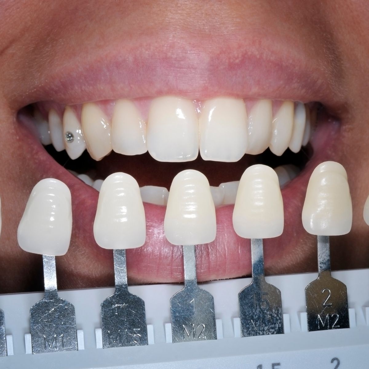 Ko gre za lepljenje na protetične nadomestke, kot so luskice in krone, pa je situacija bolj zapletena. Ob tej želji je nujno treba preveriti možnosti nanosa pri strokovnjakih za ustno zdravje iz več različnih razlogov: